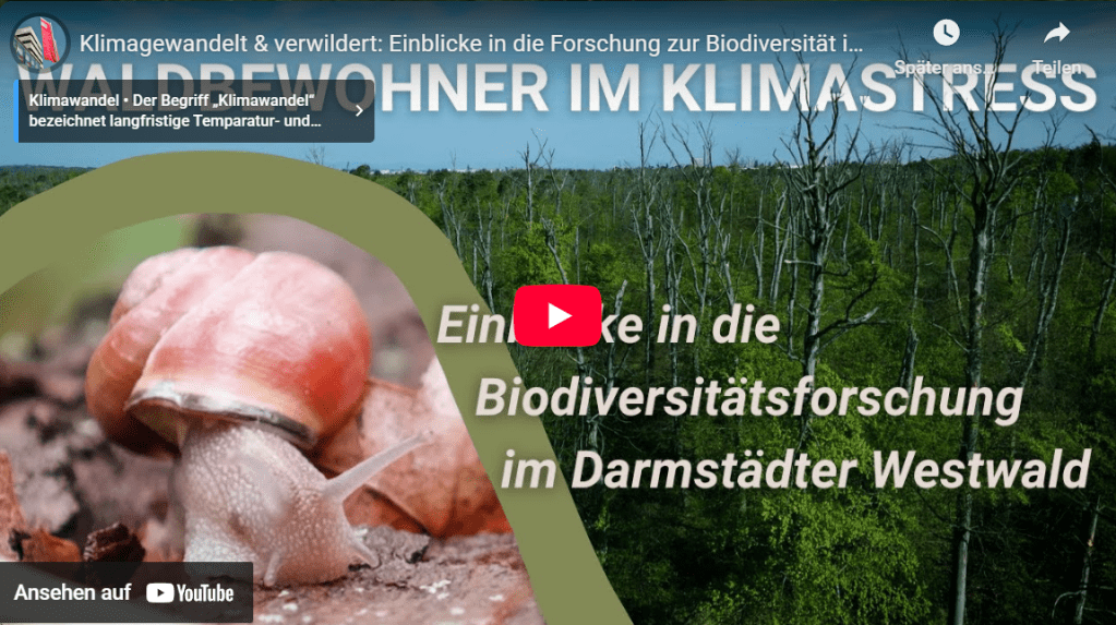 Der stark vertrocknete Darmstädter Westwald ist seit dem Jahr 2021 sich selbst überlassen. Welchen Einfluss haben Verwilderung und Klimawandel auf die Biodiversität im Ökosystem Wald? Ein Team von Forschenden der Technischen Universität Darmstadt macht sich auf die Suche und gibt Einblicke in die Biodiversitätsforschung.